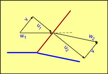 Prandtl-Meyer ExpansionIn this section the expansion of a flow is considered. A supersonic flow negotiating a convex corner undergoes expansion. As Expansion Shocks are not possible for steady flow, then expansions will be produced by a series on Mach waves. The expansion will be an isentropic process. ![]() Figure 33: Flow expansion through a shock? The waves may be centered at a convex corner or spread out as in the case of a convex surface. The Mach Waves are divergent in both the cases. A centered wave is called a Prandtl-Meyer Expansion fan. ![]() Figure 34 : Prandtl-Meyer Expansion A Prandtl-Meyer fan is shown in Fig. 34, through which a flow expands from a Mach Number, $M_1$ to $M_2$. The leading wave is inclined to the flow at an angle $μ_1=\sin^{-1}(1\/M_1)$ and the expansion terminates in a wave inclined at an angle, $μ_2=\sin^{-1}(1\/M_2)$ . An expression connecting the flow turning angle $θ$ and the change in Mach Number can be found. Considering a differential element within the fan (Fig. 35) then the previous rules for 1-D flow with weak waves shown in the previous sections canbe applied. The Mach Number changes from $M$ to $M + dM$ as the flow turns through an angle $dθ$. ![]() Figure 35 : Prandtl-Meyer Expansion, continued For a weak disturbance (Mach Wave), $$-dθ=√{M^2-1}{dw}/w$$ where $w$ is the initial flow velocity before the wave. On integrating it gives, $$-θ+\text"constant"= ∫√{M^2-1}{dw}/w = ν(M)$$ where a new function $ν$ has been introduced. This is called the Prandtl-Meyer function. Starting from the results of the previous 1-D flow section, $${dw}/w={dM}/M+{da}/a= {dM}/M(1/{1+{γ-1}/2M^2})$$ then, after manipulation and substitution, $$ν(M)=√{{γ+1}/{γ-1}}\tan^{-1}(√{{γ-1}/{γ+1}(M^2-1)})-\tan^{-1}(√{M^2-1})$$ The Prandtl-Meyer function is a significant tool for calculating supersonic flows. Note that for $M=1, ν=0$. For every Mach Number greater than one there is a unique Prandtl-Meyer function value. Tables for supersonic flow at the end of this section list $ν$ as a function of Mach Number. The practice, $ν$ is the angle through which a sonic flow should be turned in order to reach a Mach Number of $M$. In addition, a flow turning through an angle $θ$ will experience a change in Prandtl-Meyer function value of, $$ν_2=ν_1 + θ$$ With the knowledge of $ν, M_2$ can be calculated for any value of $θ$. This function can also calculate the Mach Number following an isentropic compression, $$ν_2=ν_1 - θ$$ ![]() Figure 36 : Using Prandtl-Meyer Function It should be noted that $ν$ decreases in compression and increases in expansion. See Fig. 36 |